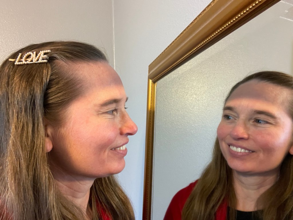 Girl, look at her. You may think this idea of loving that girl in the mirror is unattainable, but it’s not. Start today. Start small. Pick one thing to like. Say it out loud. Insist today on finding something to love. And do the same tomorrow. For a hundred tomorrows. And then a thousand more. Refuse the lies. Focus on the truth. God’s truth.